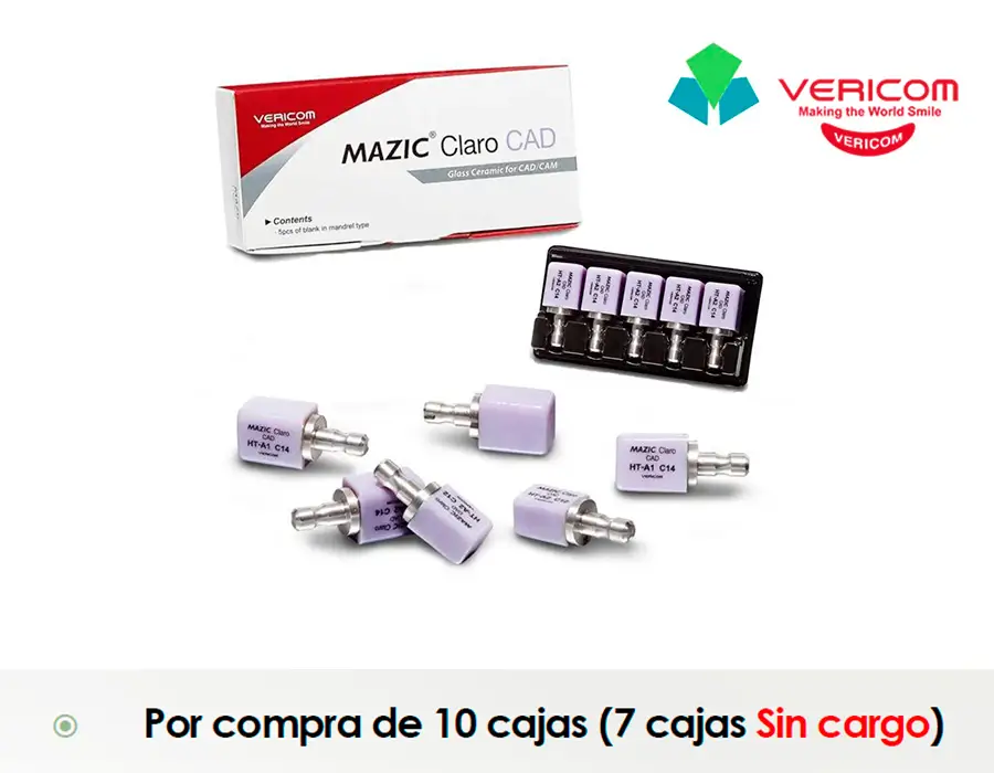 Aprovecha esta promoción exclusiva de Vericom en MAZIC Claro CAD, un material de alto rendimiento diseñado para trabajos CAD/CAM con excelente estética y precisión.