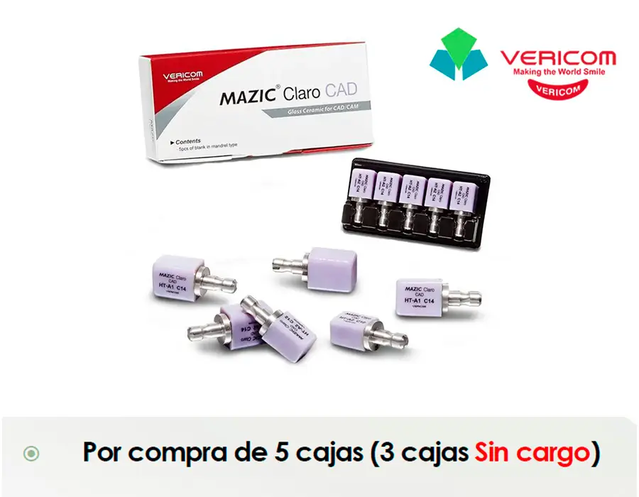 Aprovecha esta promoción exclusiva de Vericom en MAZIC Claro CAD, un material de alto rendimiento diseñado para trabajos CAD/CAM con excelente estética y precisión.