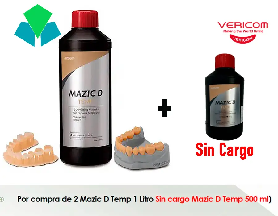 Aprovecha esta promoción exclusiva de Vericom en MAZIC D Temp, una resina 3D diseñada para la fabricación de provisionales con excelente ajuste, estética y resistencia.